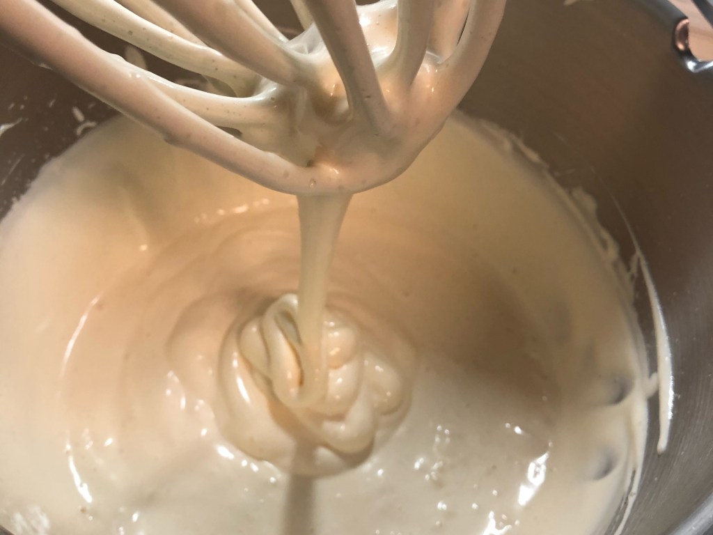 - Für die Füllung wir Sahne mit San Apart steif geschlagen und zur Seite gestellt.