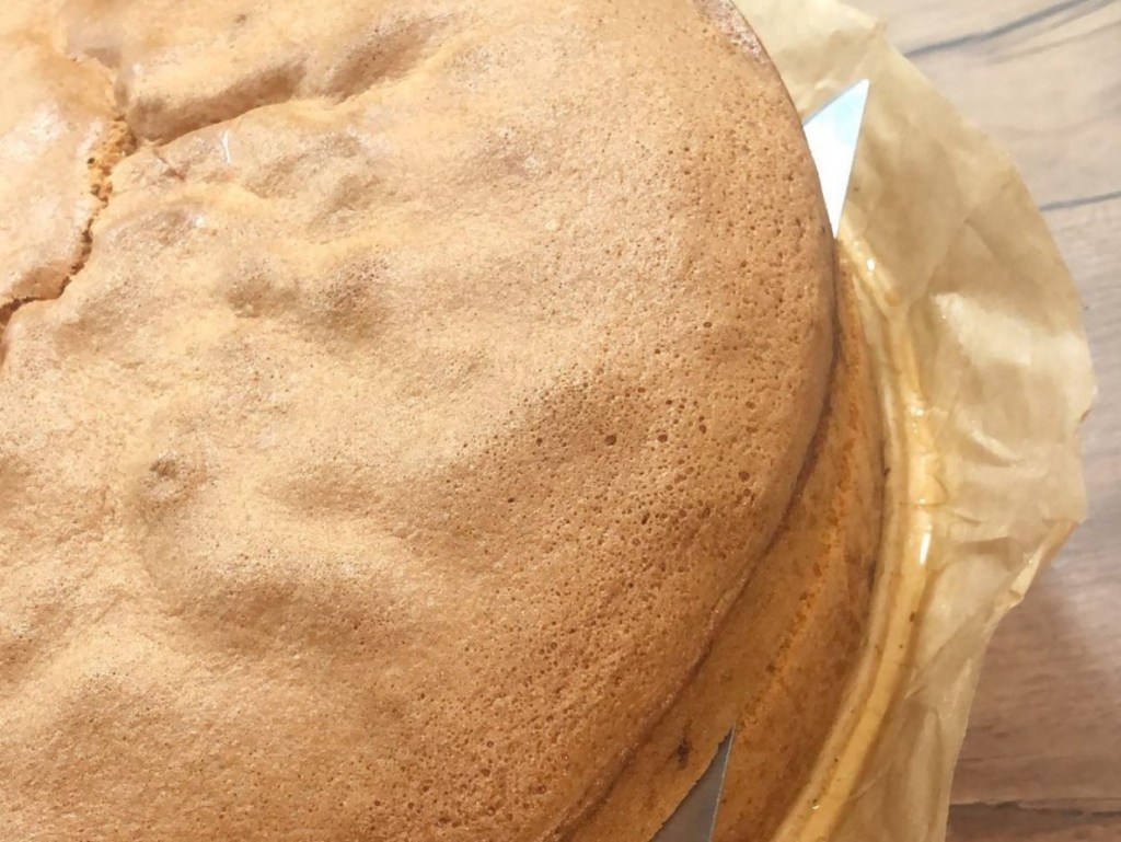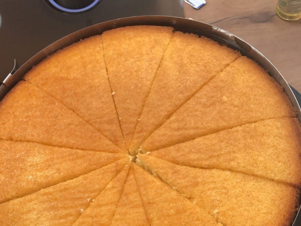 - Nach dem Backen sollte der Boden gut auskühlen und er dann halbiert werden.