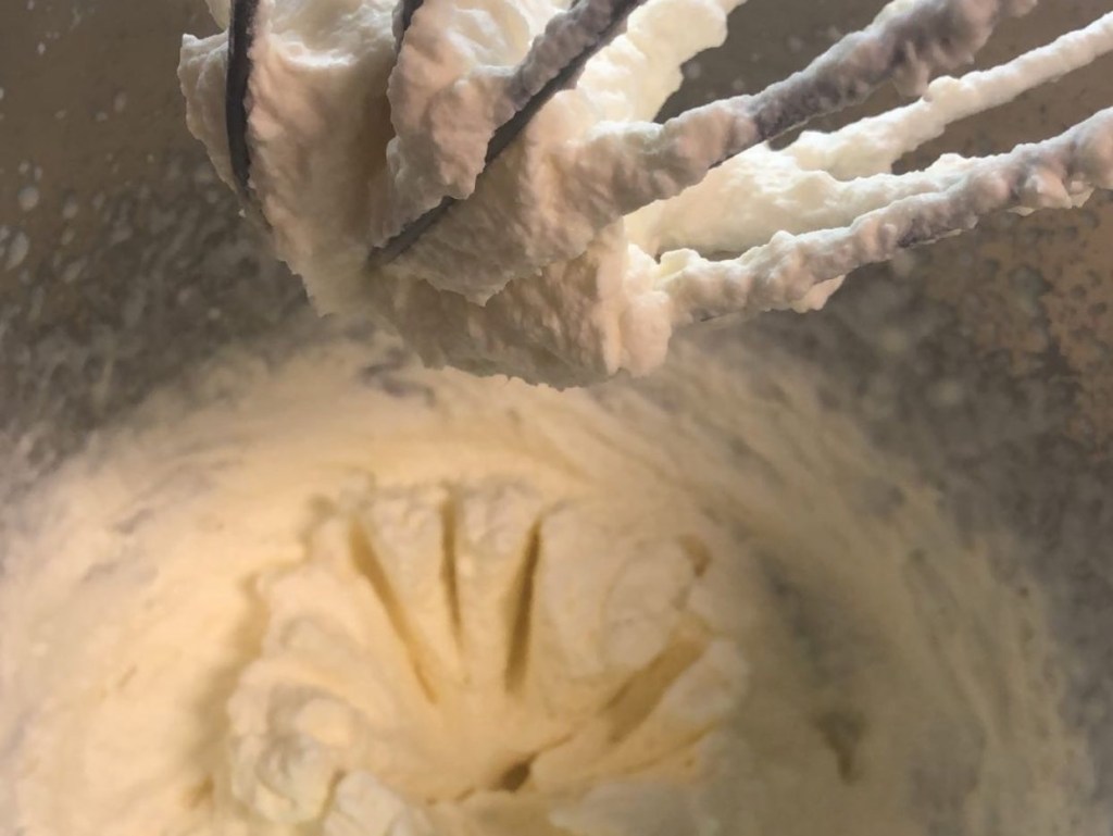 - Anschießend vorsichtig die geschlagene Sahne unterheben.